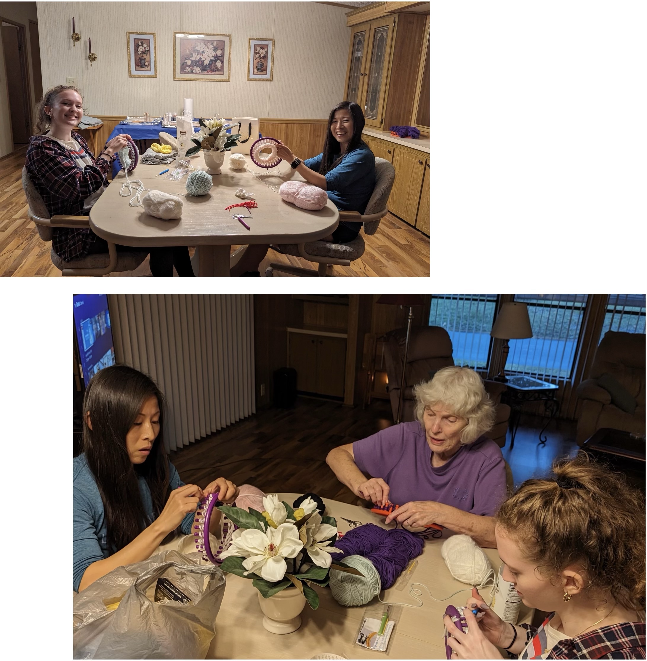 Our second project together: looming hats! Mom has been making these hats and donating them to an organization.