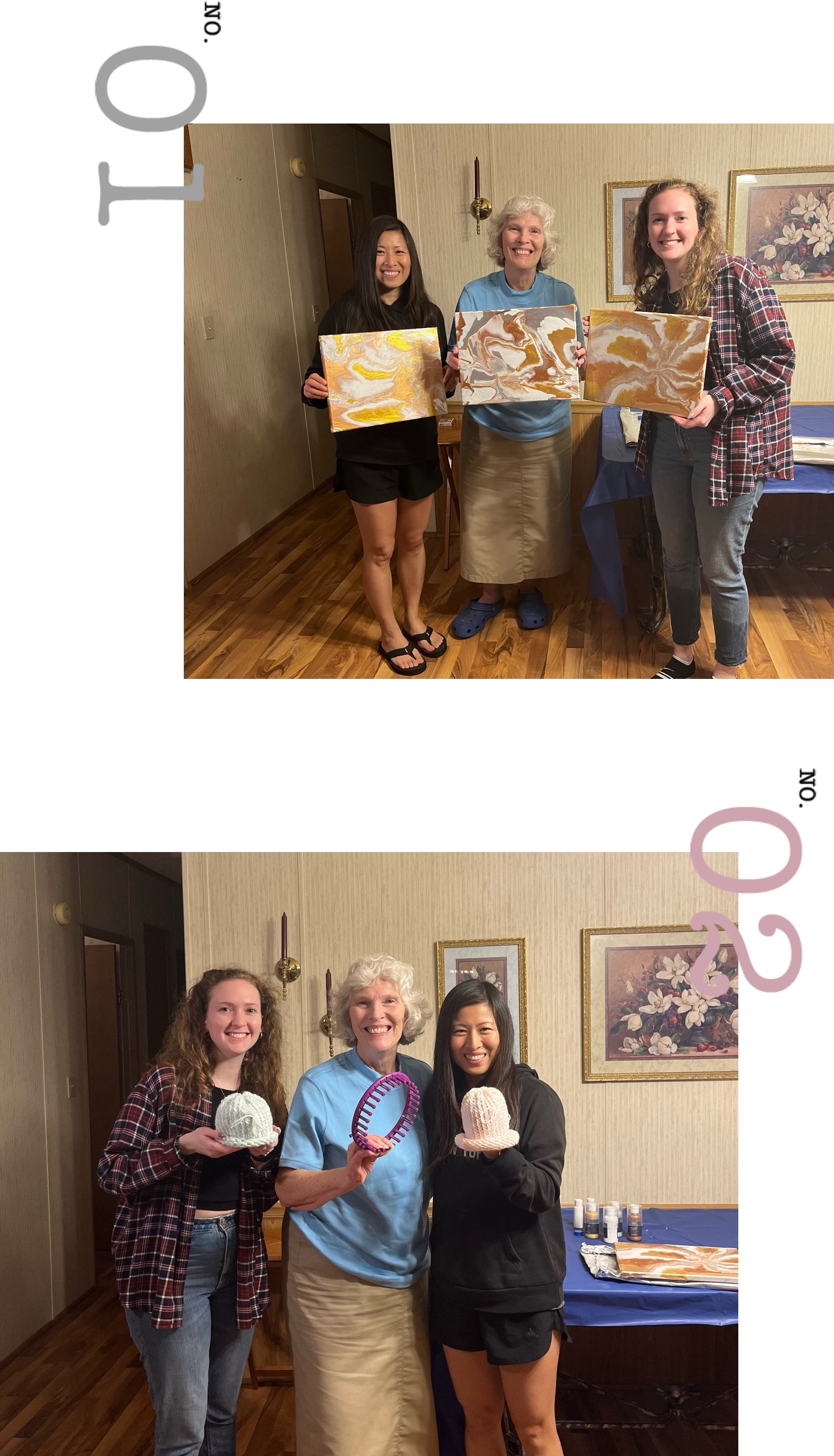 It’s….show time! Our pour paint and both Valerie and I got to finish making the baby hats! We