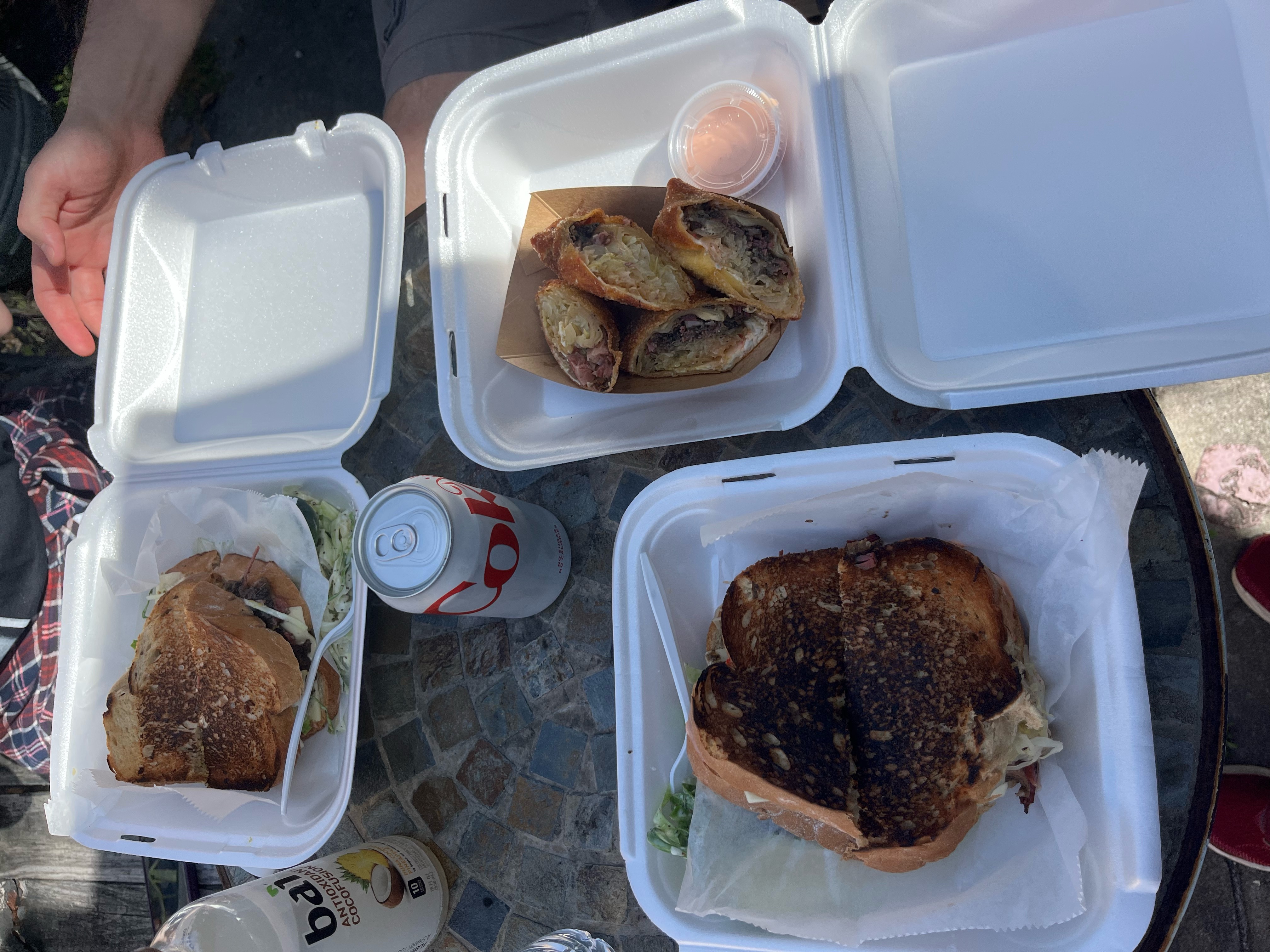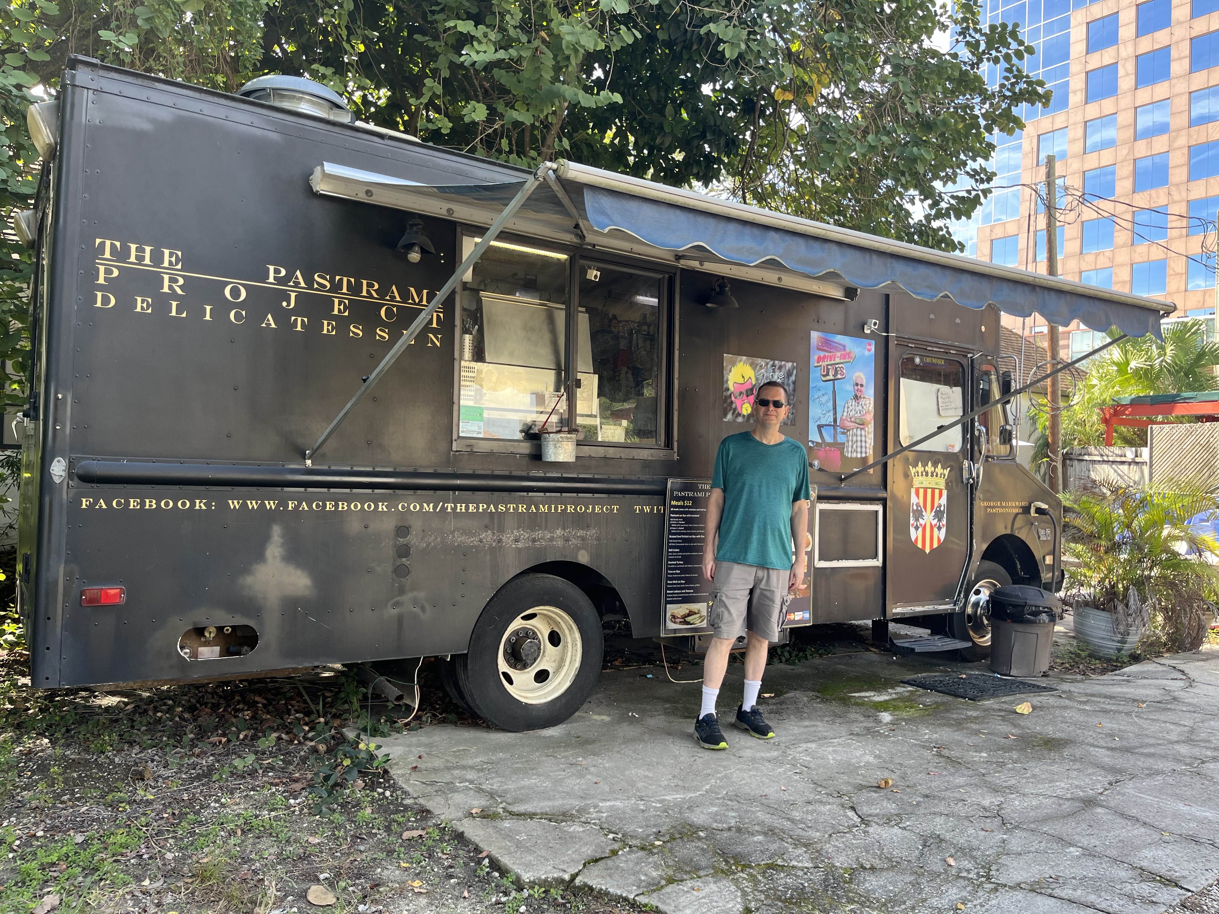 We stopped by a triple D (a TV show) food truck on the way to the airport: Pastrami Project