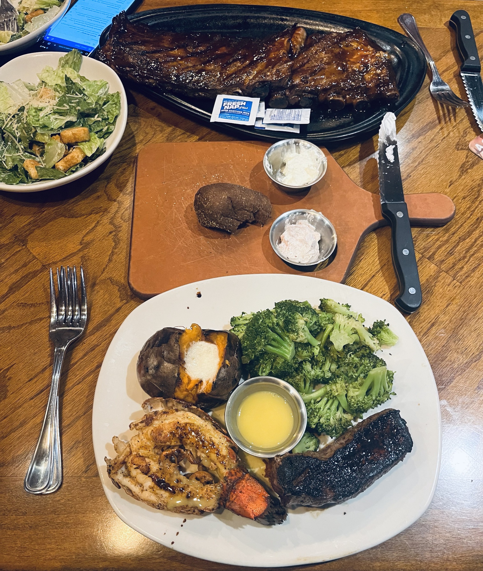 晚餐,今天的心情是吃肉肉!Outback龙虾、牛排套餐促销$20, 还有一大扇猪排😍
